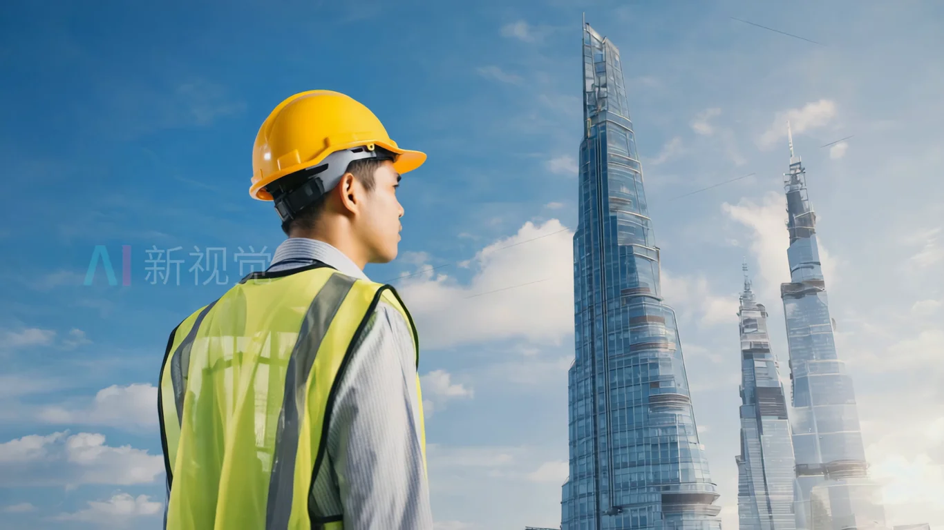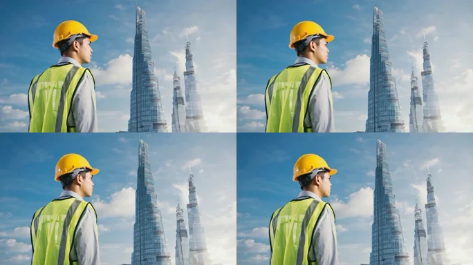 首页 / 视频素材 / AI视频素材(横屏) / 工程师眺望高楼建筑