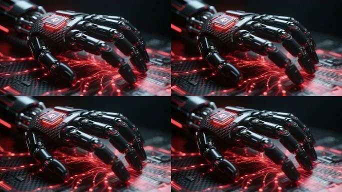 带AI芯片的机械手掌素材