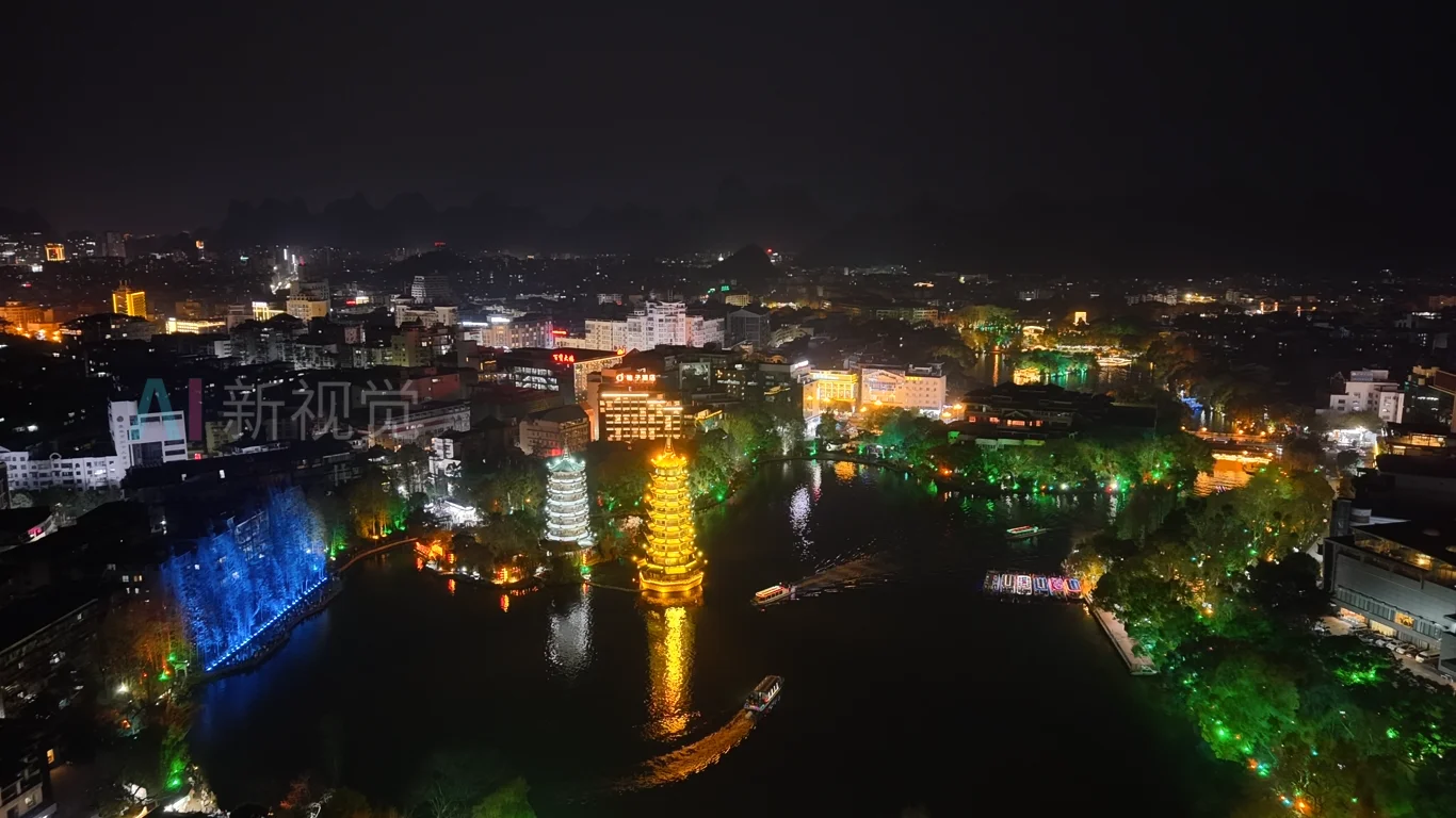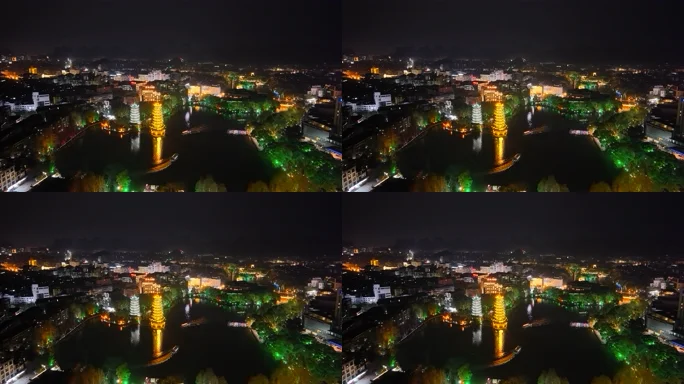 广西 桂林 日月双塔 夜景 航拍