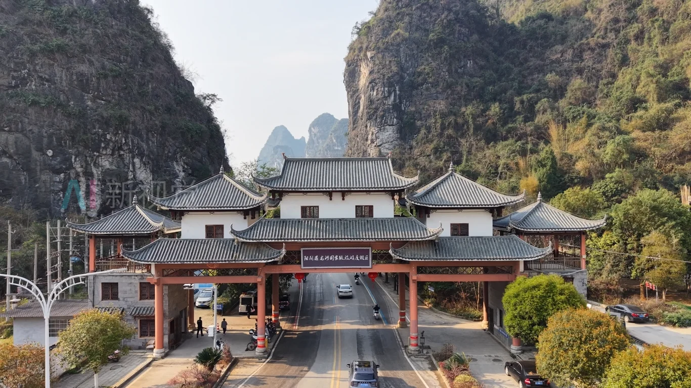 广西桂林阳朔遇龙河景区航拍