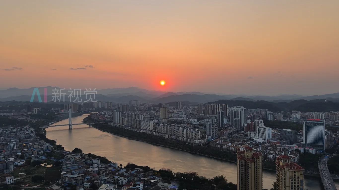 首页 / 视频素材 / 实拍视频素材(横屏) / 广西百色城市建设百色日落航拍