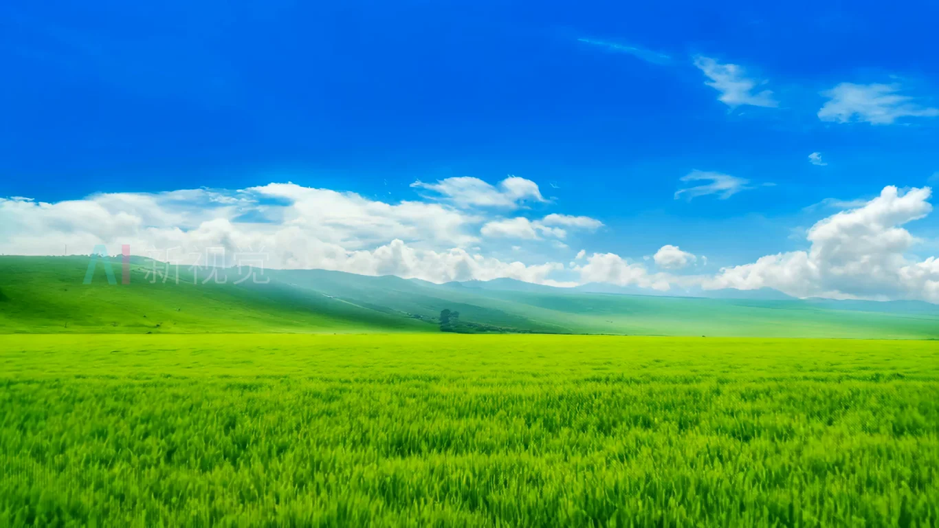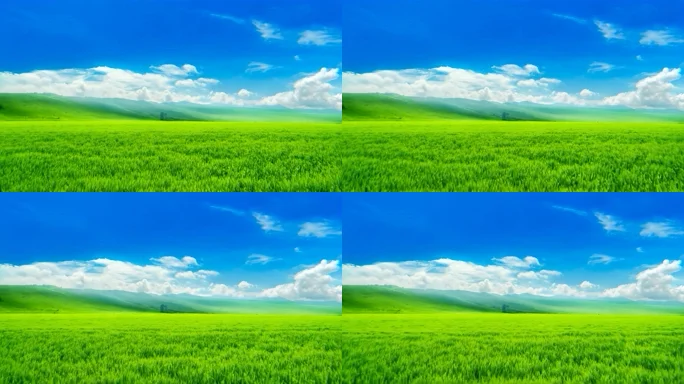 广阔草原蓝天白云风景