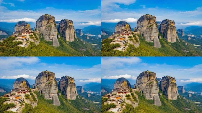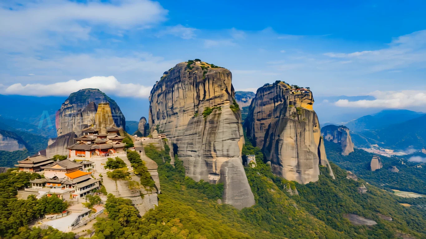 悬崖上的古建筑自然风光