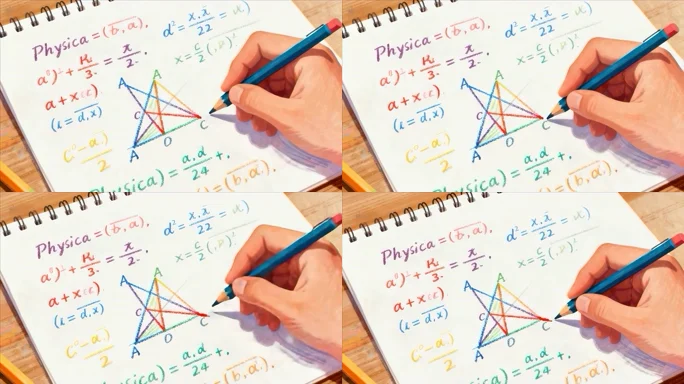 手用铅笔书写物理数学公式