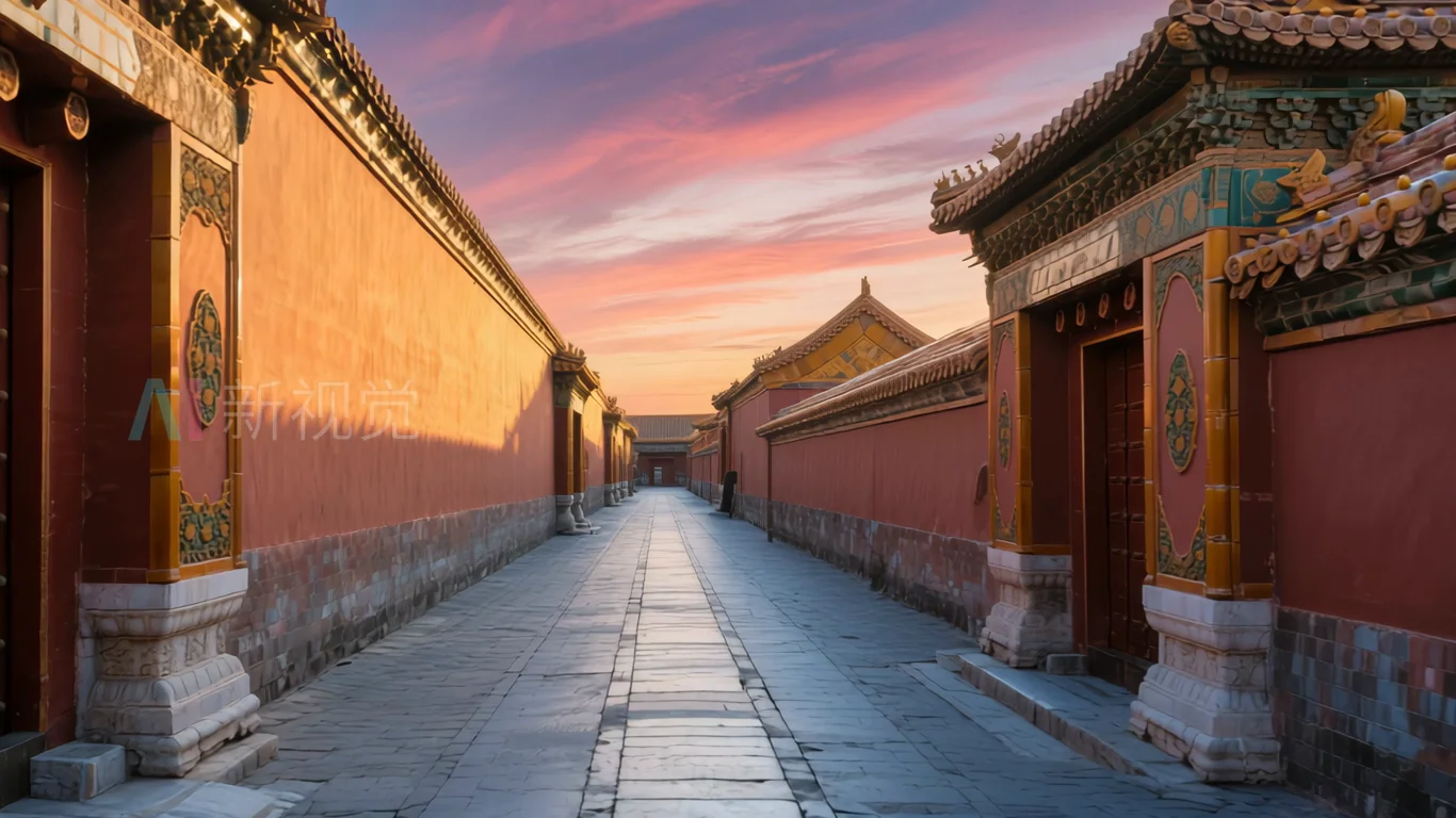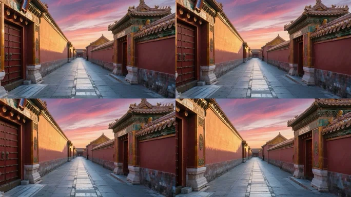 首页 / 视频素材 / AI视频素材(横屏) / 故宫黄昏时古建筑街道景象