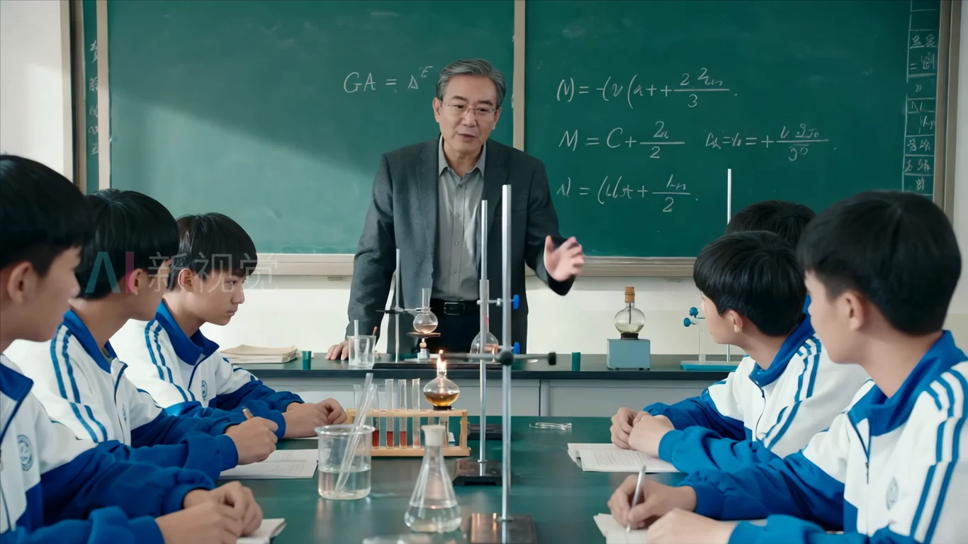 教师在教室给中学生上实验课