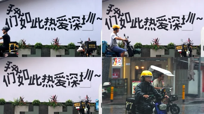 实拍素材放心商用,暴雨中的外卖员小哥美团饿了吗跑腿骑手。