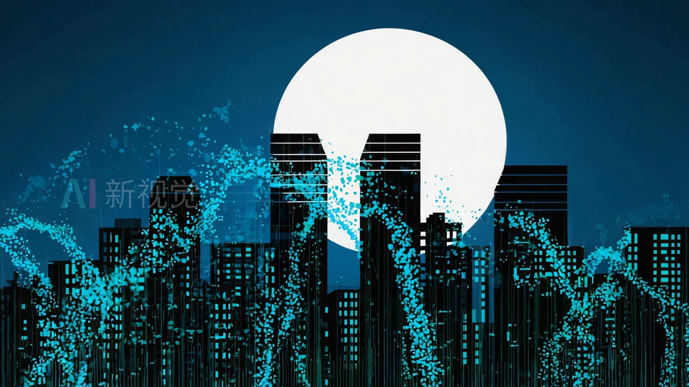 首页 / 视频素材 / AI视频素材(横屏) / 未来城市粒子数据特效画面