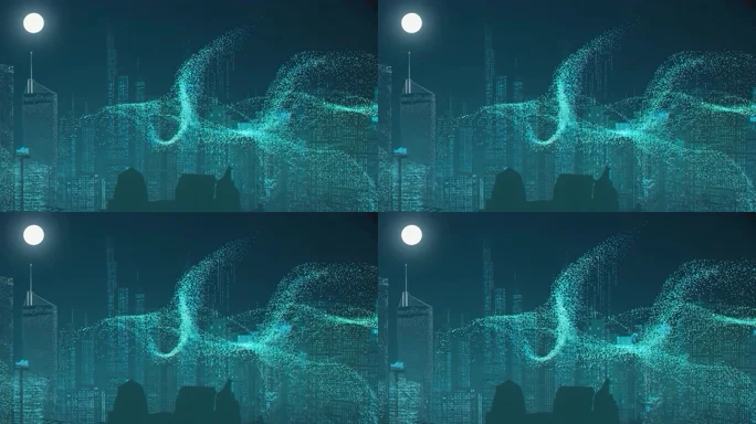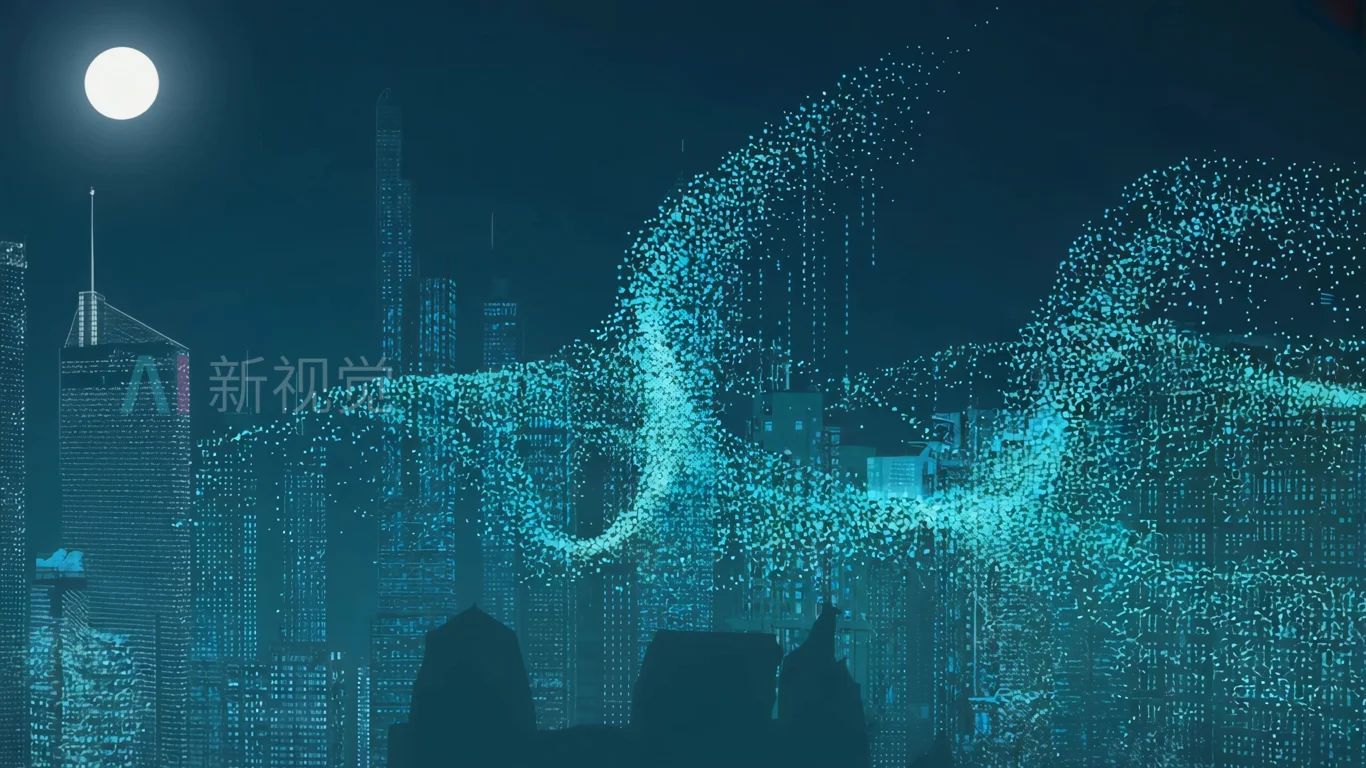 首页 / 视频素材 / AI视频素材(横屏) / 未来城市粒子数据特效画面