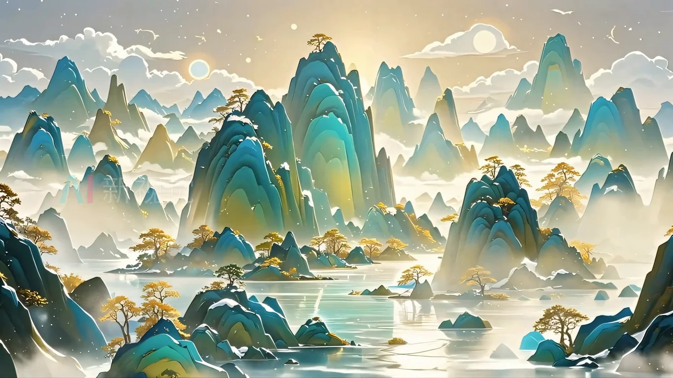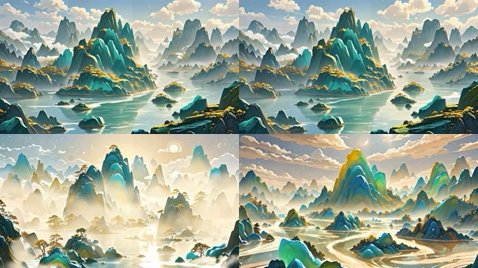 4K,3840*2160,30P,MP4格式 桂林山水中国风景千里江山图绿水青山翡翠风格国画大好河山视频素材下载AIGC