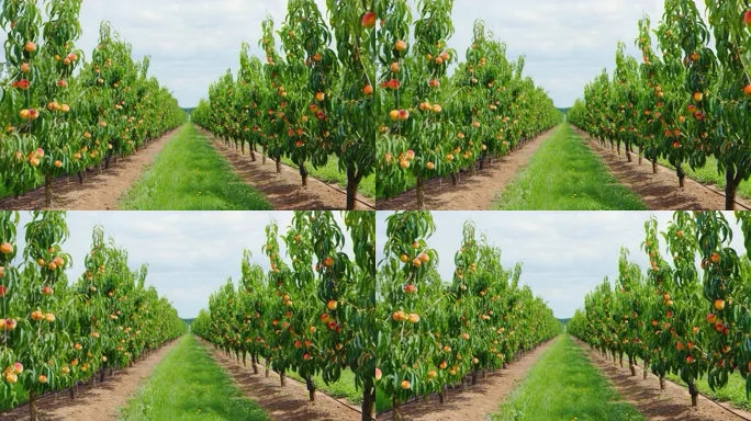 首页 / 视频素材 / AI视频素材(横屏) / 桃园果树与成熟桃子景象