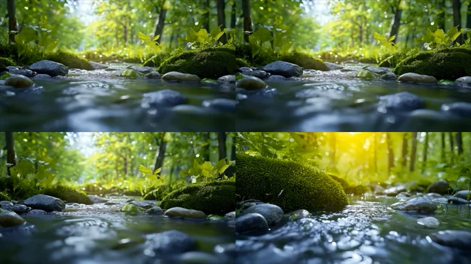首页 / 视频素材 / AI视频素材(横屏) / 森林中小溪自然风光