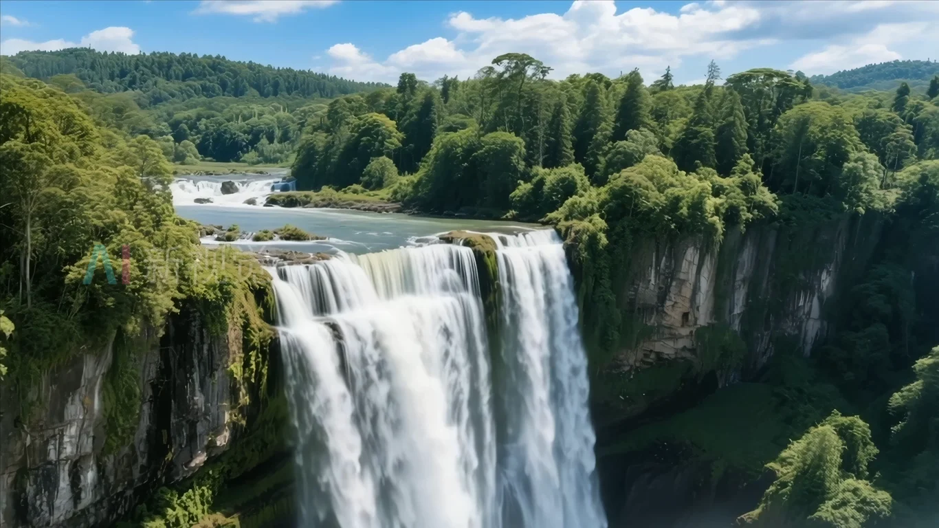 首页 / 视频素材 / AI视频素材(横屏) / 森林中河流瀑布全景