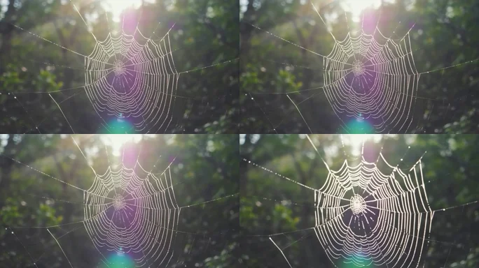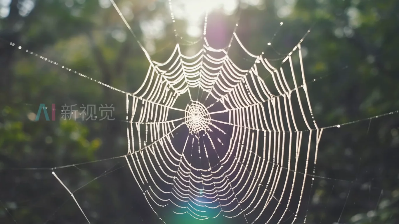 首页 / 视频素材 / AI视频素材(横屏) / 森林中阳光照耀下的蜘蛛网