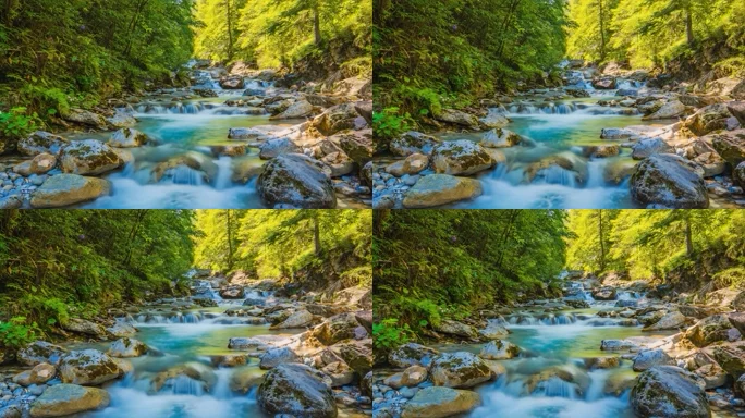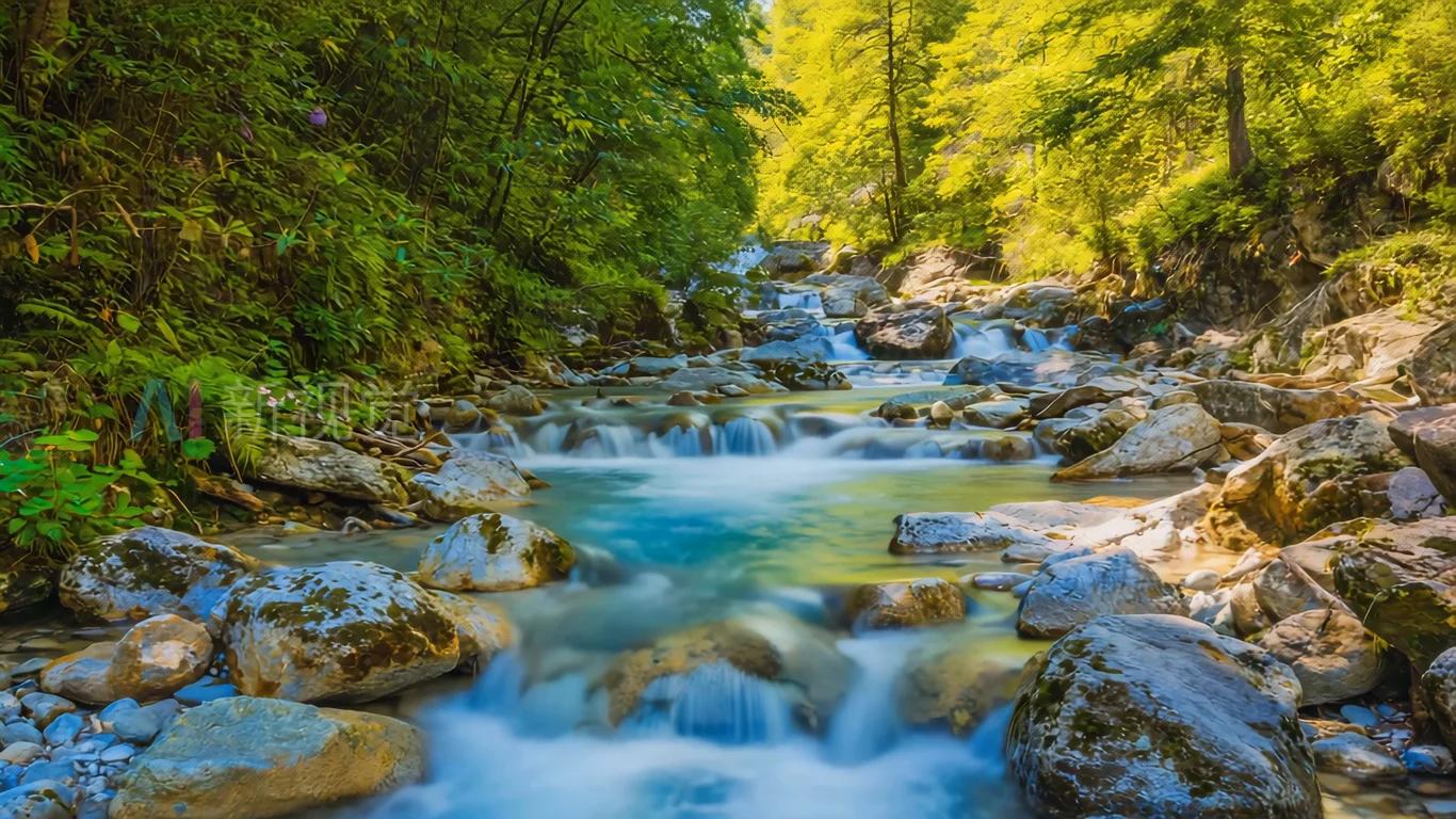 森林溪流阳光彩虹自然美景