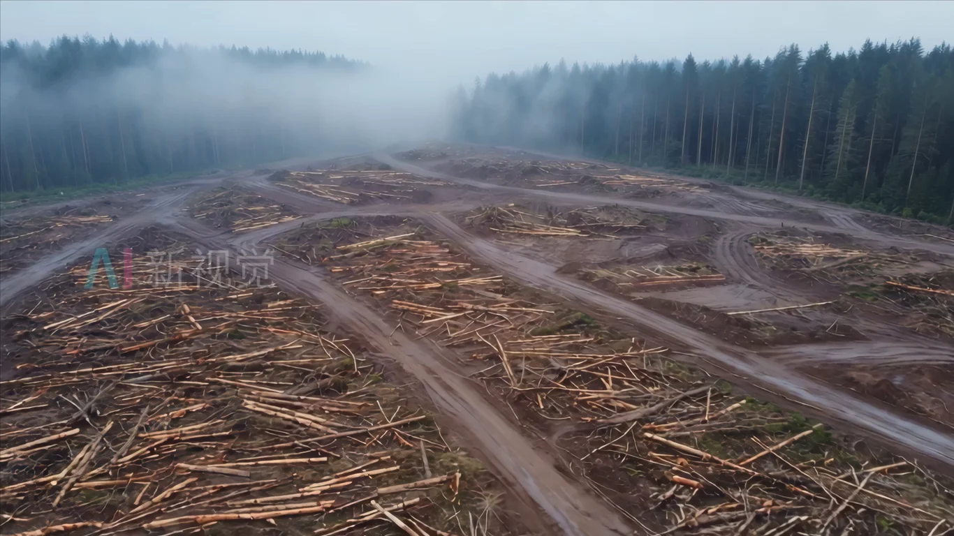 森林砍伐后的空地俯瞰