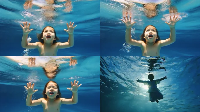 水下儿童游泳画面