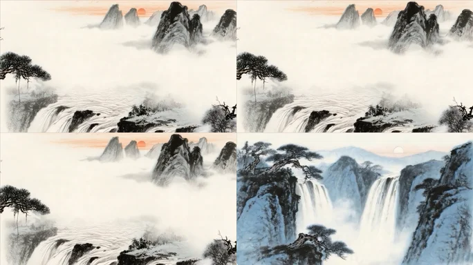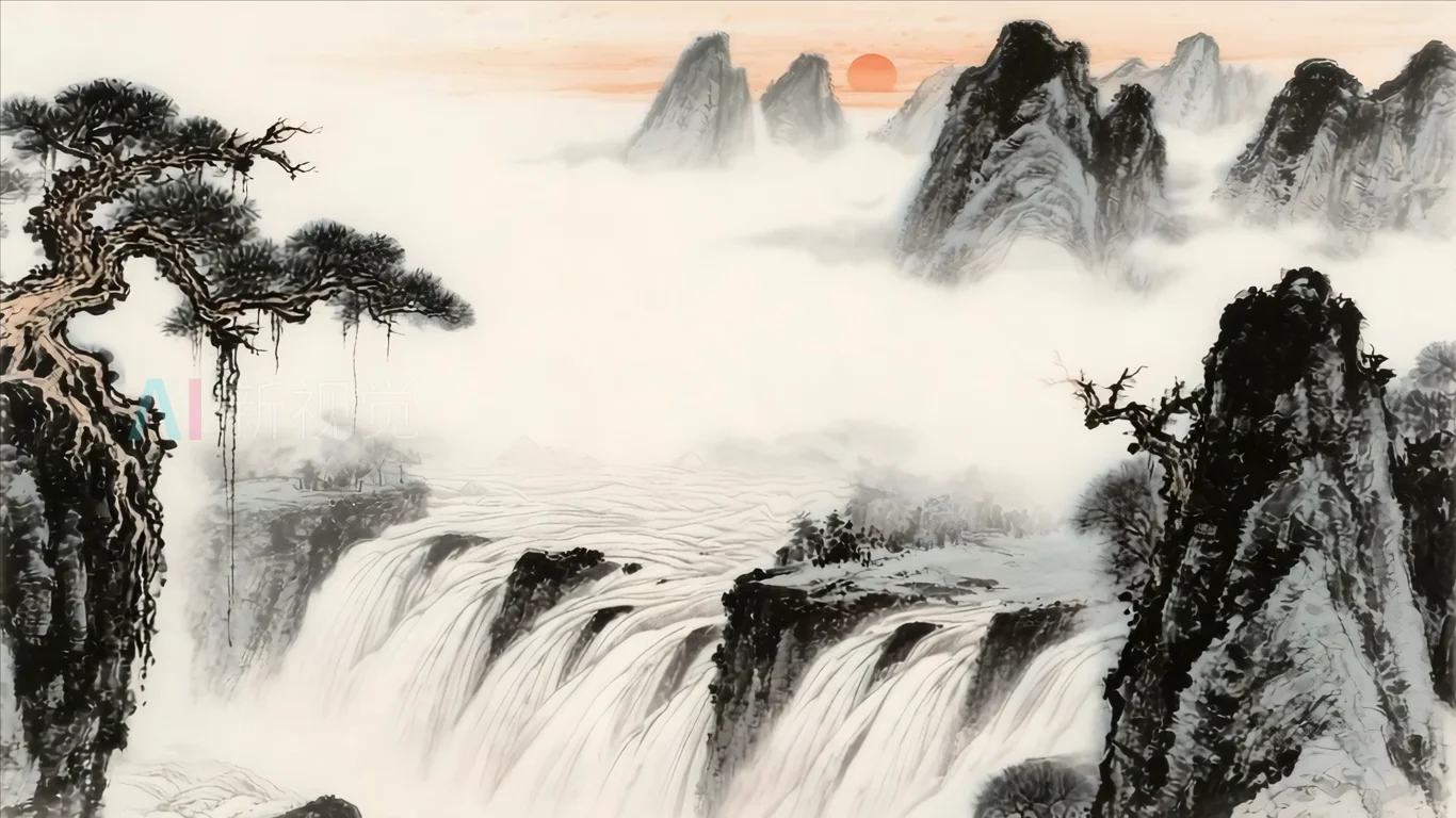 水墨山水日出风景