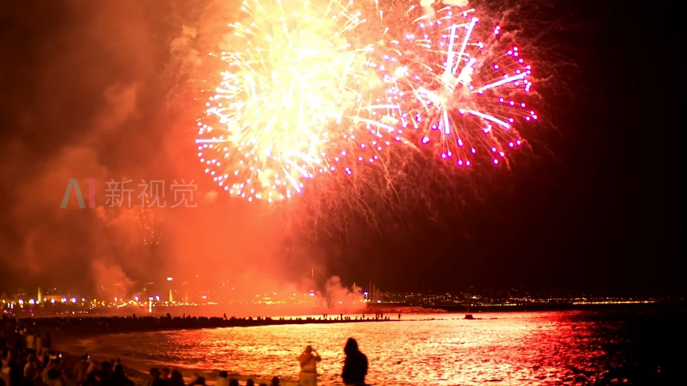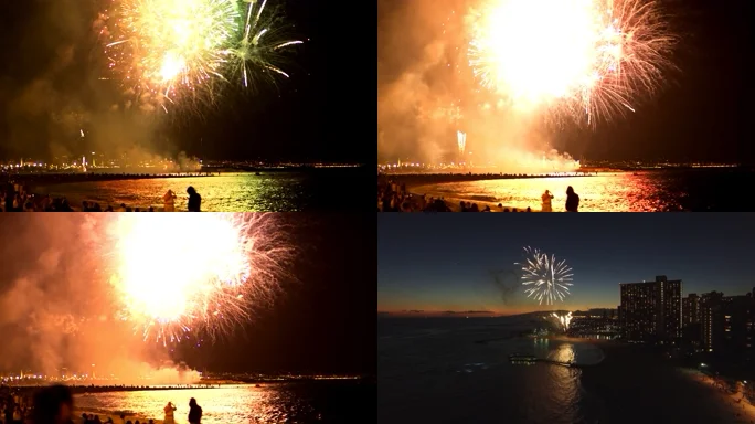 沙滩烟花海边烟花度假烟花人群看烟花多彩烟花 4K高清视频素材下载,3840*2160像素。