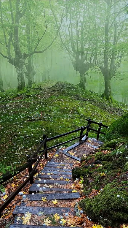 首页 / 视频素材 / AI短视频素材(竖屏) / 治愈冰雹雨景春天夏天树林林间小道4