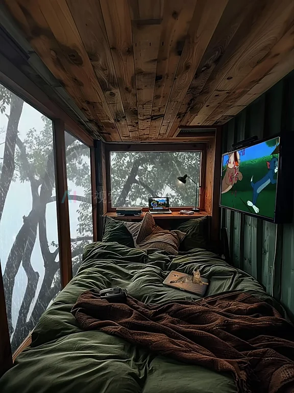 首页 / 视频素材 / AI短视频素材(竖屏) / 治愈怀旧温暖雨景客厅美景1