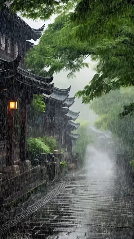 治愈系江南中式建筑八角楼窗户雨景古树竹林6