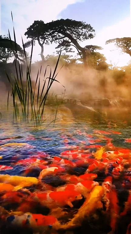 首页 / 视频素材 / AI短视频素材(竖屏) / 治愈美景锦鲤早晨的景色