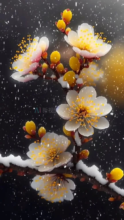 首页 / 视频素材 / AI短视频素材(竖屏) / 治愈美景黄昏怀旧梅花雪景仙境 (2)