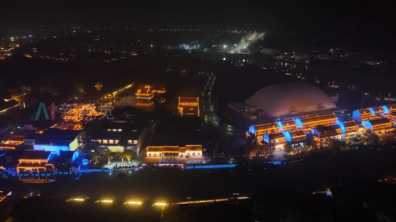 浙江湖州南浔古镇夜景灯光航拍