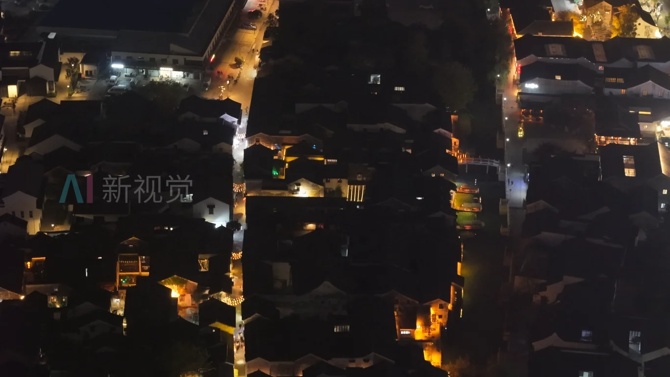 浙江湖州小西街历史文化街区夜景航拍