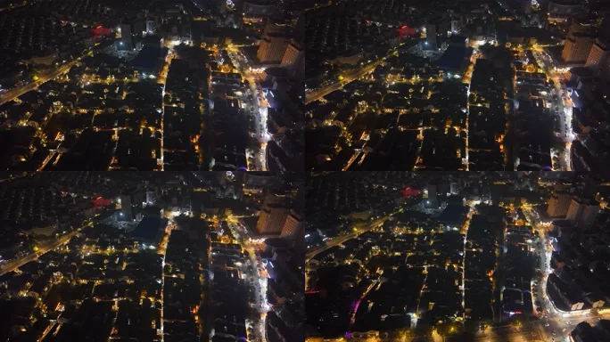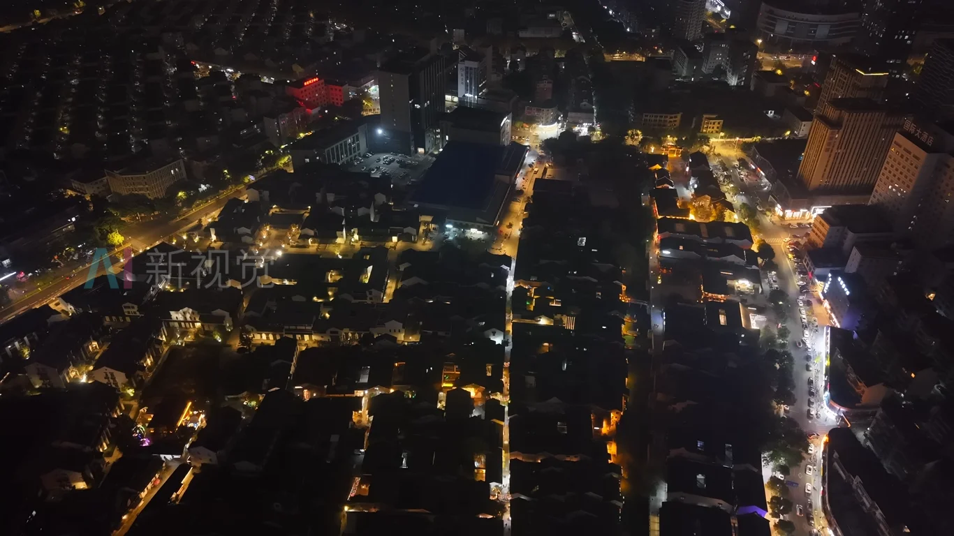 浙江湖州衣裳街历史文化街区夜景航拍