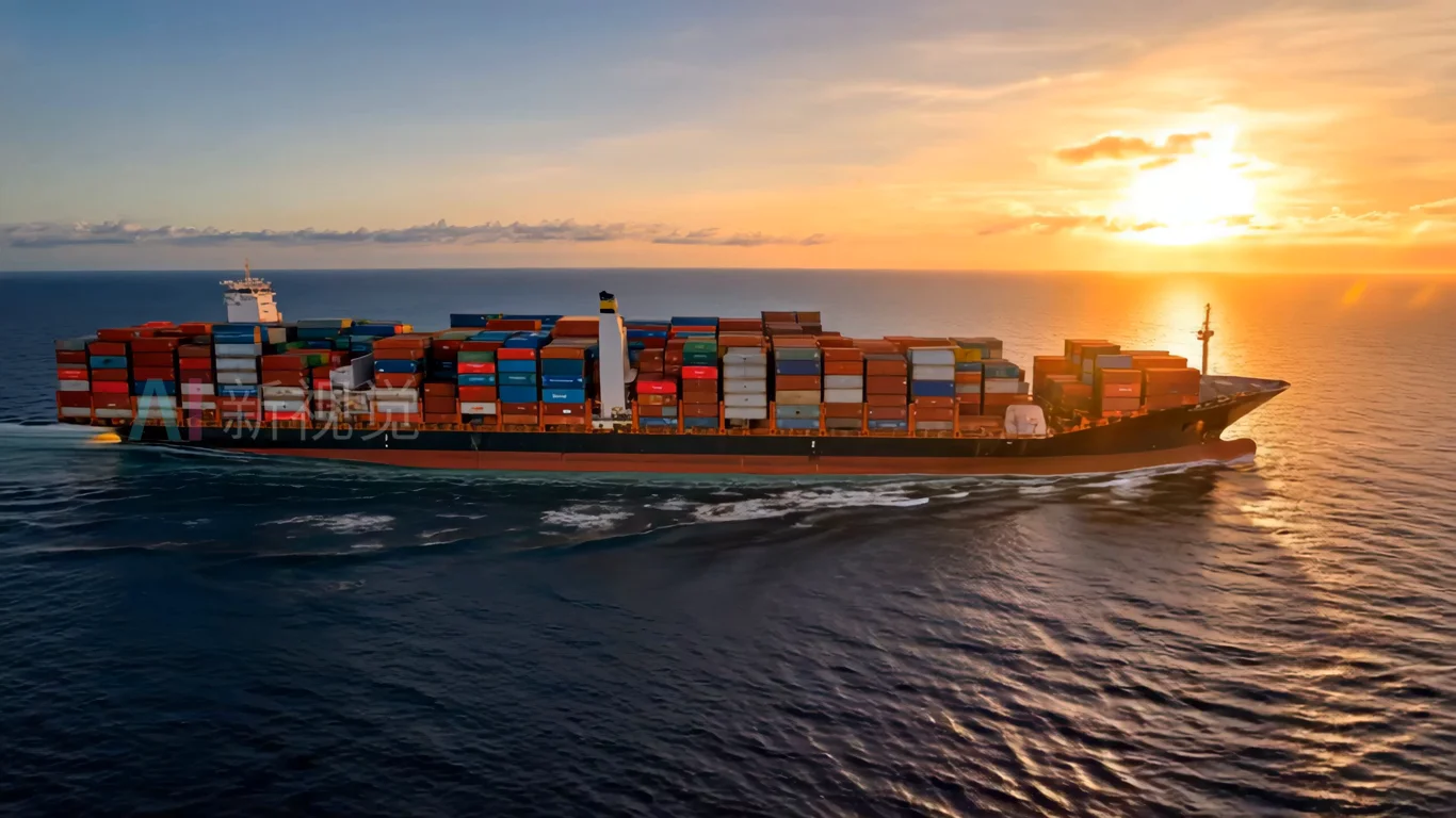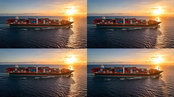 首页 / 视频素材 / AI视频素材(横屏) / 海上集装箱货船日出航行