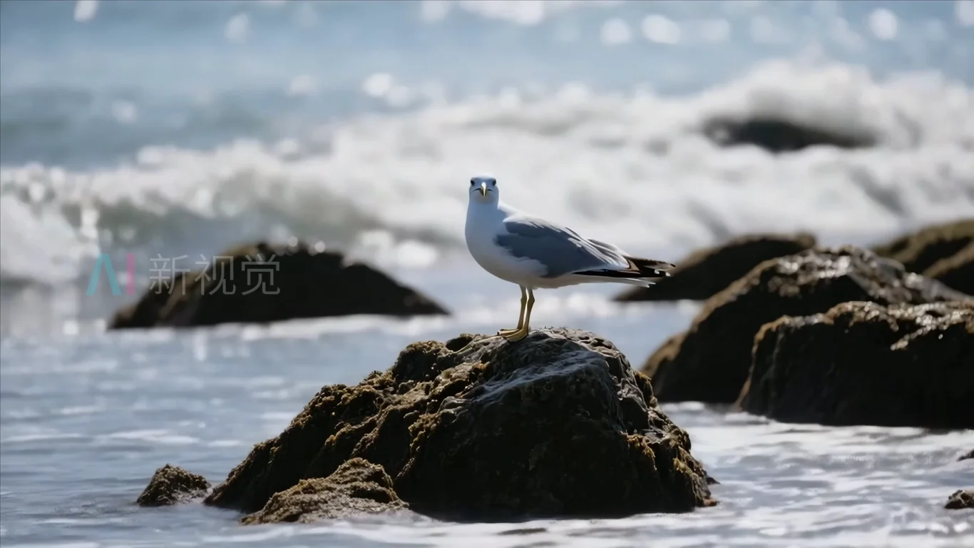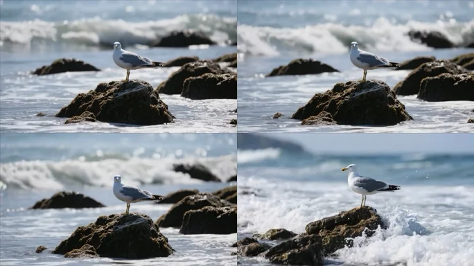 海边礁石上站立的海鸥