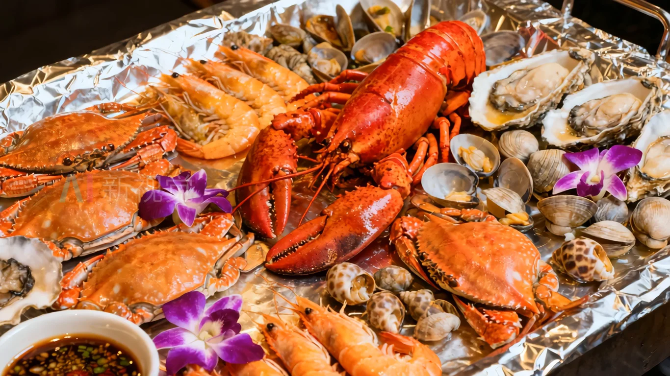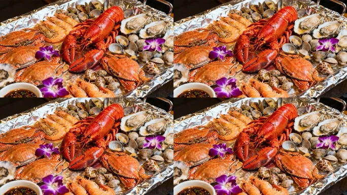 海鲜拼盘特写