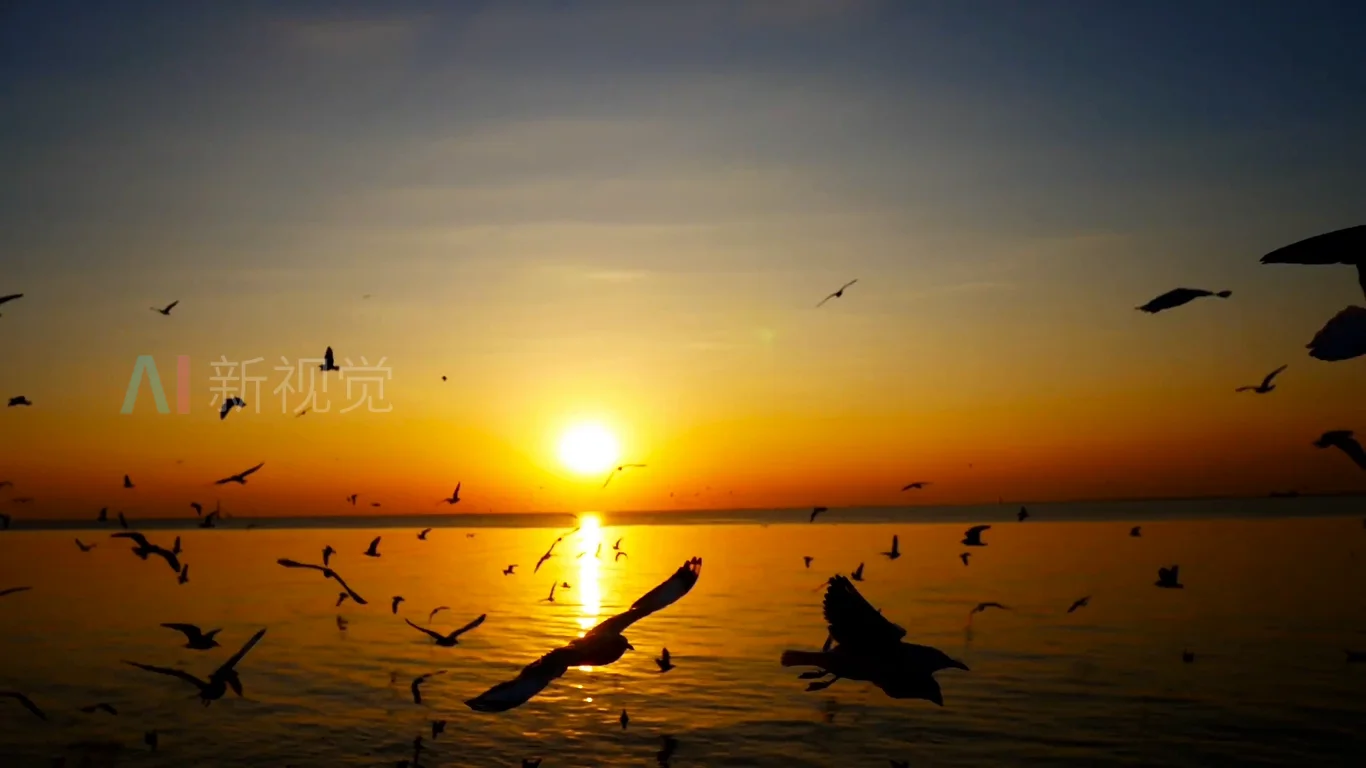 海鸥日落黄昏风景