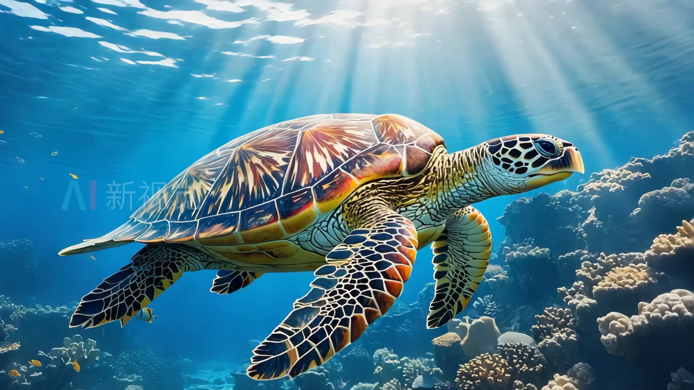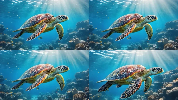 首页 / 视频素材 / AI视频素材(横屏) / 海龟在海洋中游泳画面