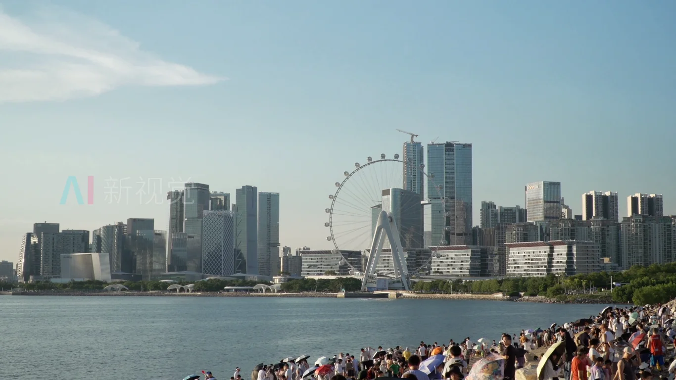 一个视频镜头看:深圳前海石公园人造沙滩湾区之光摩天轮