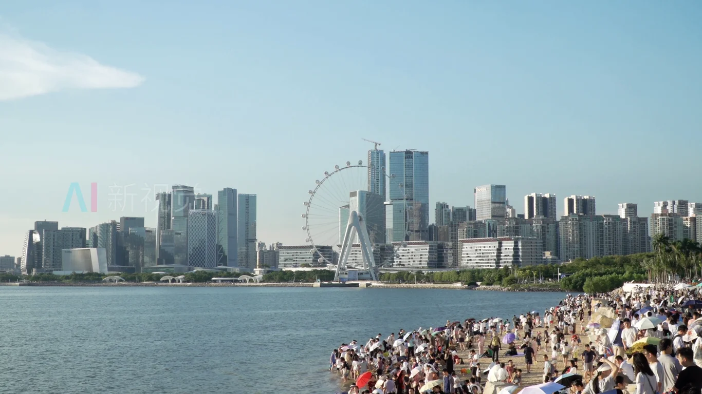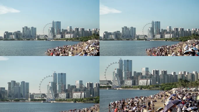 深圳前海石公园人造沙滩演艺公园周末人群摩天轮拍摄素材