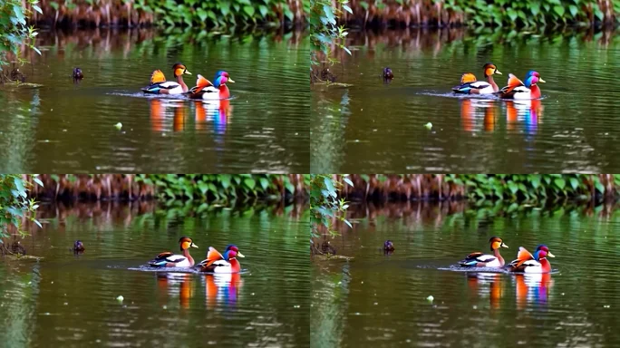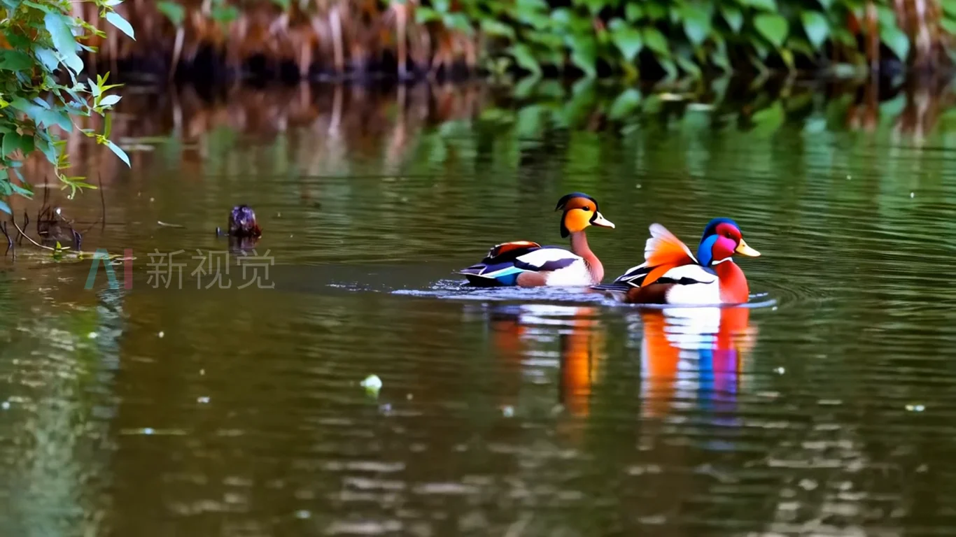 湖面鸳鸯戏水