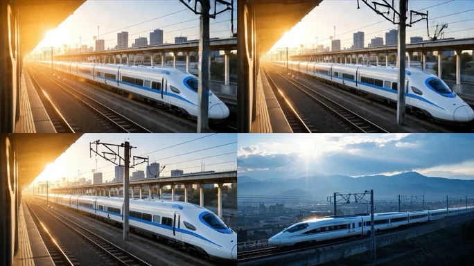首页 / 视频素材 / AI视频素材(横屏) / 火车站台高铁傍晚景象
