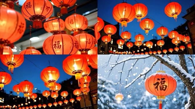 4K,3840*2160,30P,MP4 灯笼中国灯笼春节元宵节福字灯笼高清视频下载