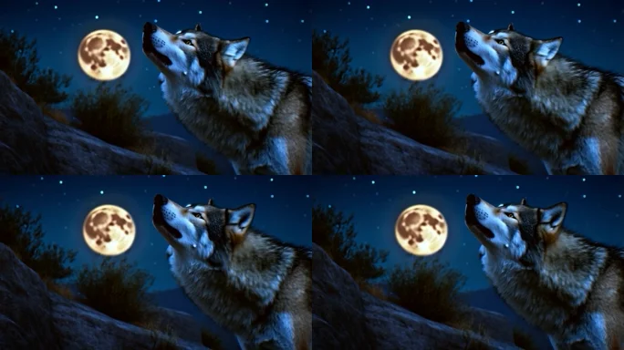 狼在月亮下嚎叫