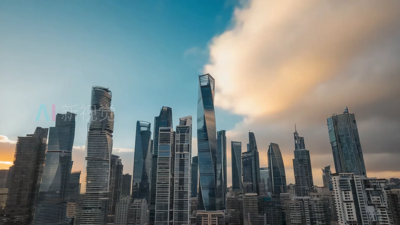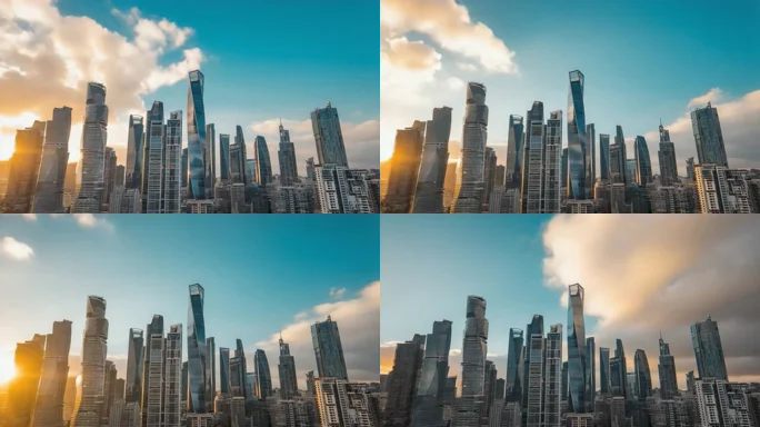 现代城市高楼建筑群延时