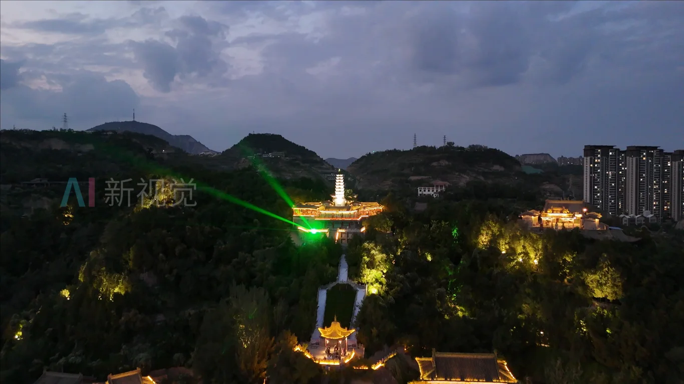 甘肃兰州白塔山公园兰州白塔寺夜景航拍