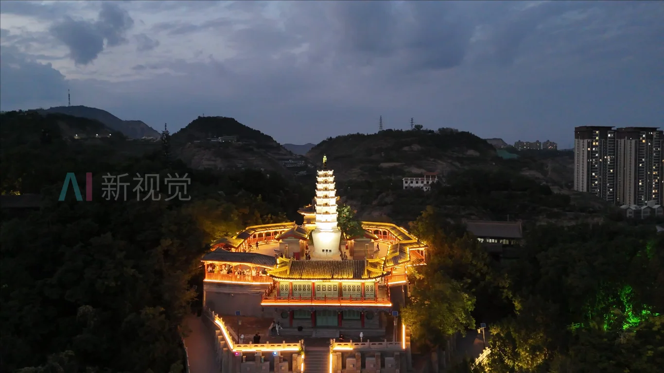 甘肃兰州白塔山公园兰州白塔寺夜景航拍