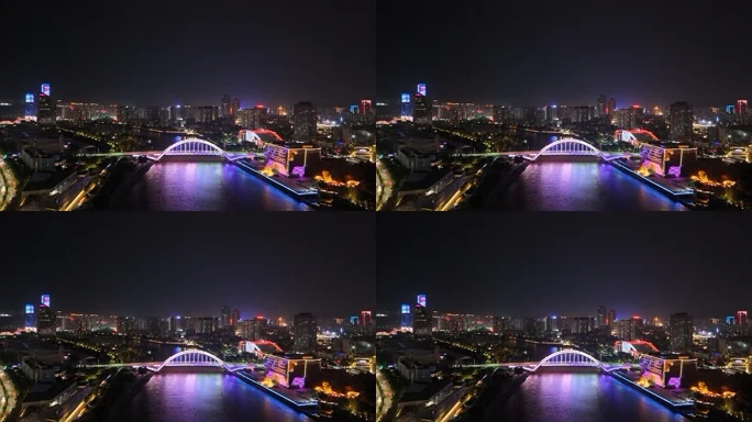 甘肃兰州金雁黄河大桥夜景航拍