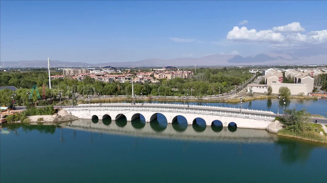 甘肃张掖芦水湾生态景区玉水桥航拍
