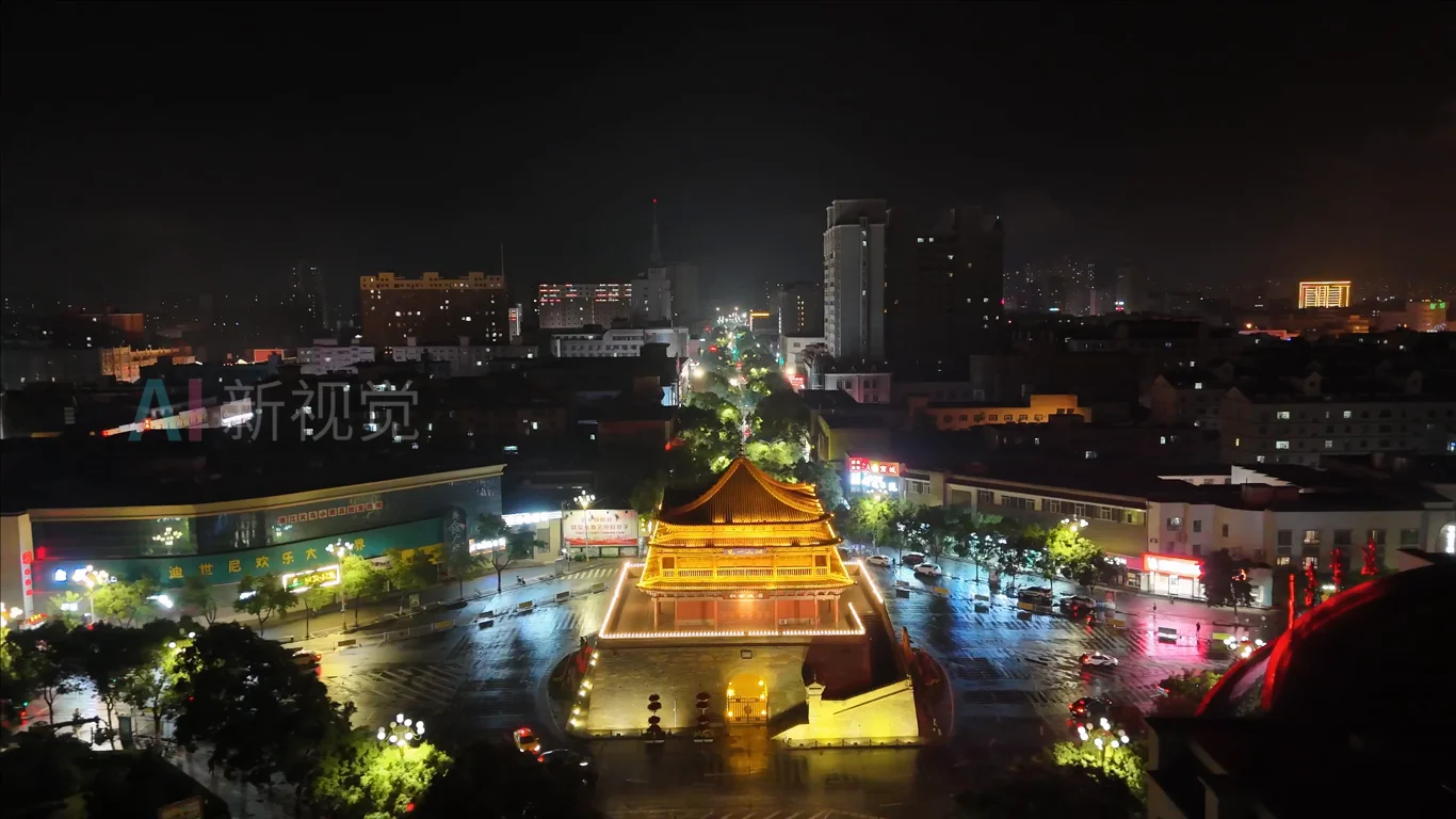 首页 / 视频素材 / 实拍视频素材(横屏) / 甘肃张掖钟鼓楼夜景航拍