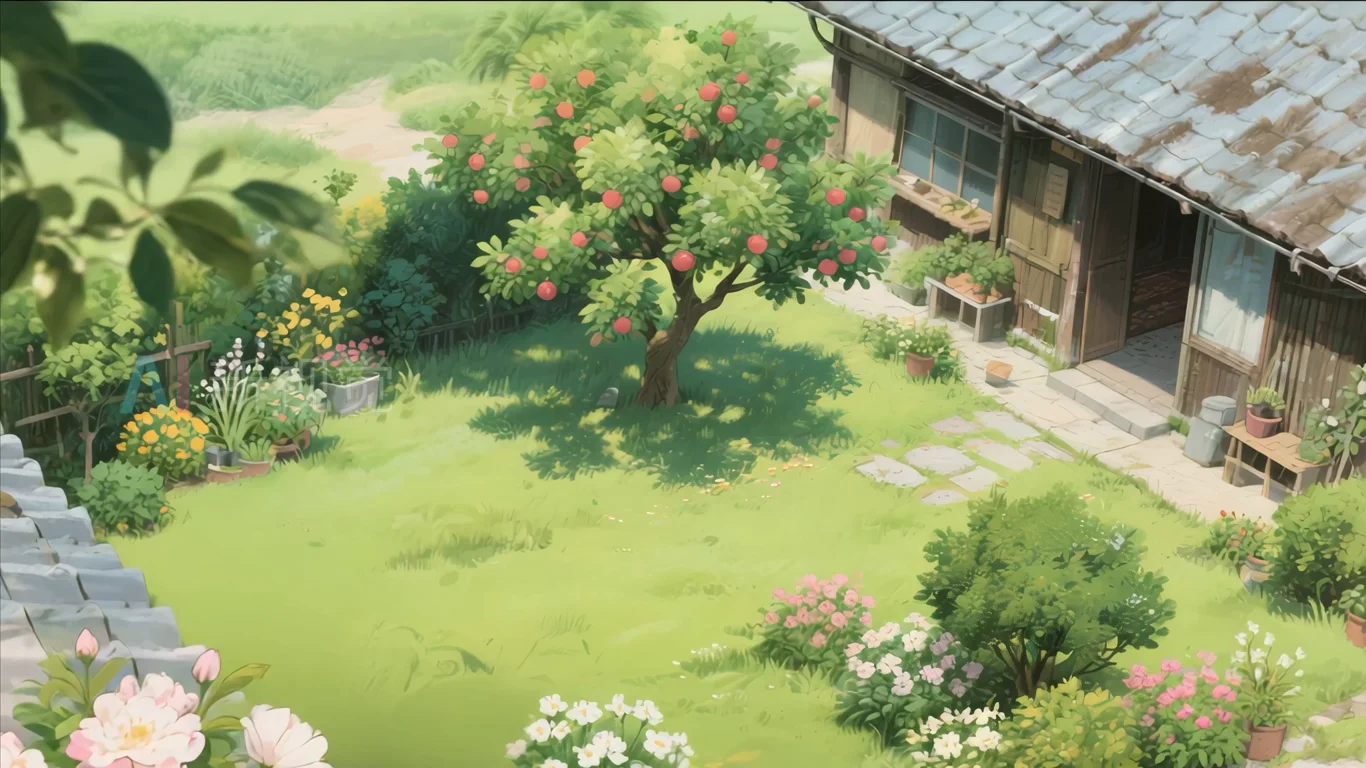 田园风木屋庭院风景