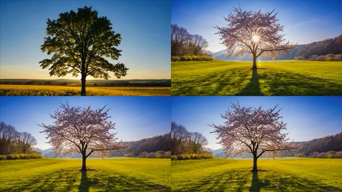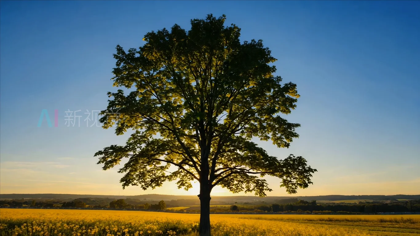 首页 / 视频素材 / AI视频素材(横屏) / 田野中大树与阳光风景素材